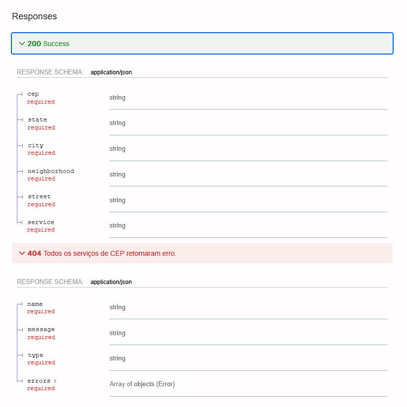 Na documentação, também é possível observar as possíveis respostas que podemos obter ao consumir esse endpoint: